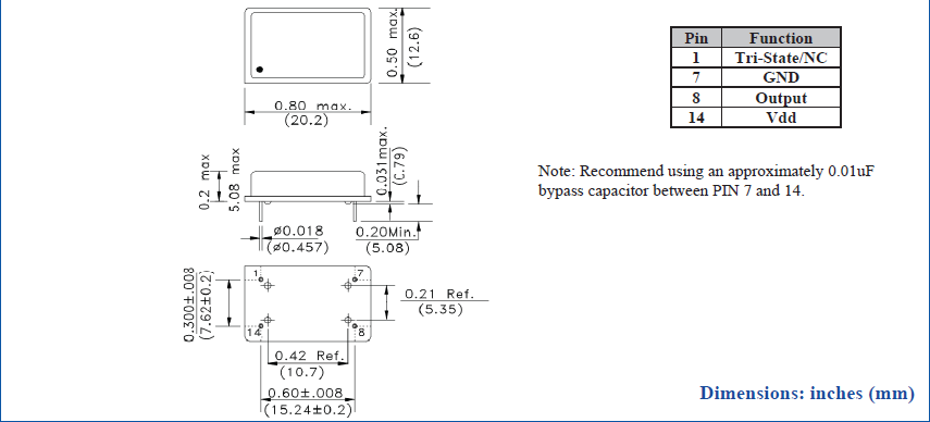 ACOL-14.31818MHZ-EK进口晶振,ACOL有源晶振SPXO,尺寸图