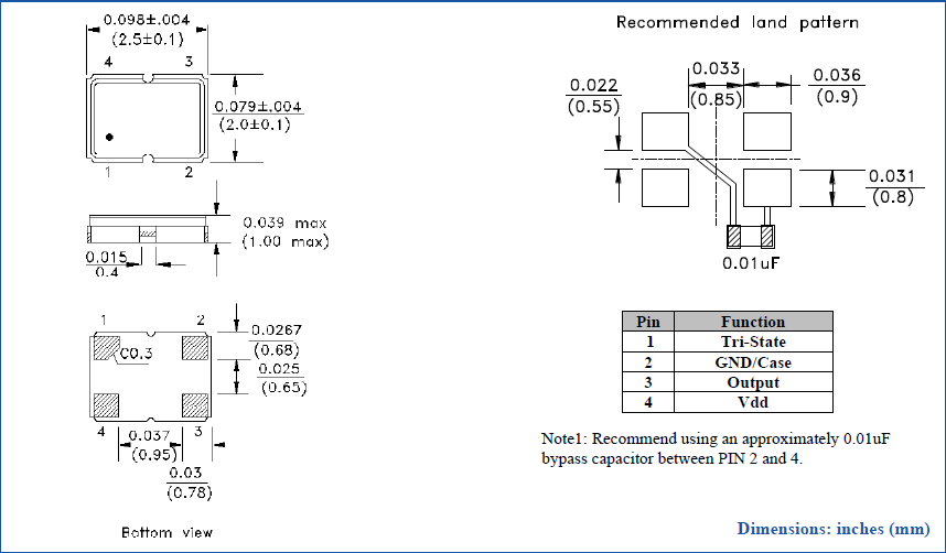 ASD1-3.6864MHZ-EC-T,ASD晶体振荡器,2520四脚贴片晶振,尺寸图