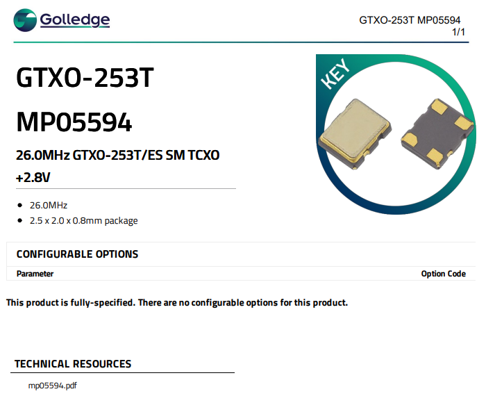 MP05594 2520 26M TCXO GTXO-253英国高利奇Golledge温补晶振