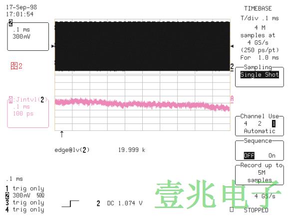 时间间隔级别错误衡量时间有源晶振的差异从理想的测量时期期,追踪A,领带的趋势@lv,被覆盖在平滑的上面跟踪,它显示峰值到峰值差异略大于±100ps,温度变化对这个振荡器影响不大,长期稳定性,如图所示图2,涉及逐渐漂移在振荡器定时,长期稳定性一般包括振荡器老化但不包括环境诱导漂移,老化,在晶体振荡器中引起的由各种机电机制,长期稳定通常以每个部分表示百万或ppm.