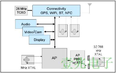 典型的智能手机或平板电脑设计,取决于它支持的应用处理器,分区和其他功能,可以包含多个定时设备,包括一个或多个32kHz XTAL.