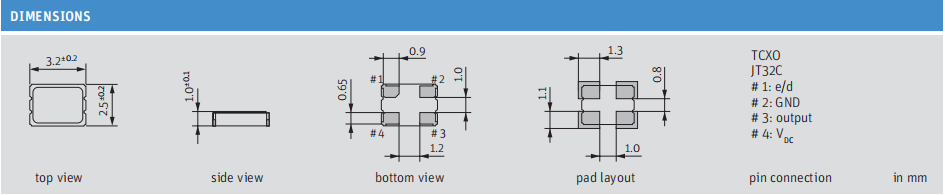 | O 25,0-JT32C-A-K-3,3-LF | Jauch Quartz | JT32C | TCXO | 25 MHz | HCMOS | 3.3V |