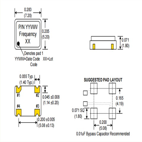 C3290-1.843200差分晶体振荡器,Crystek石英贴片晶体,尺寸图