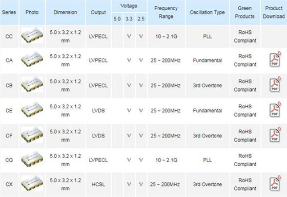 TXC压控晶振产品列表:
