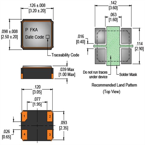 美国Wi2Wi晶振,C3小体积3225mm晶振,C325000XFBCB18RX四脚贴片晶振