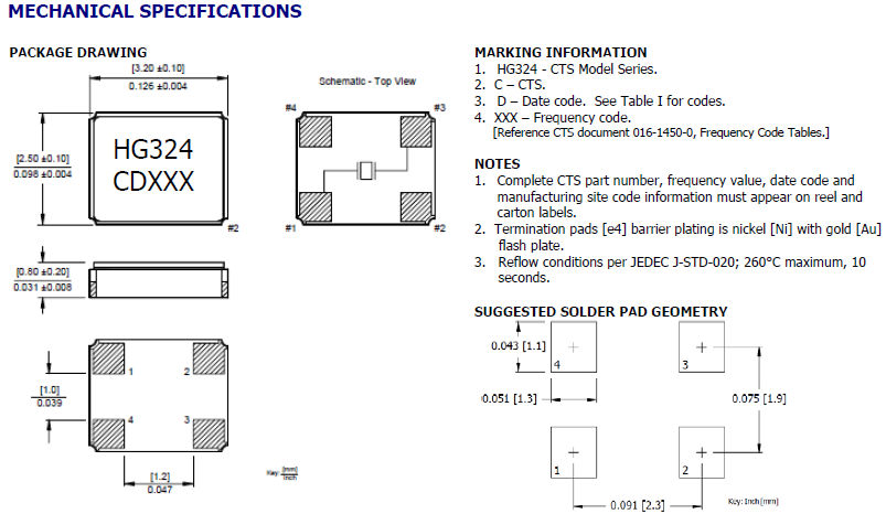 CTS晶振,贴片晶振,HG324晶振